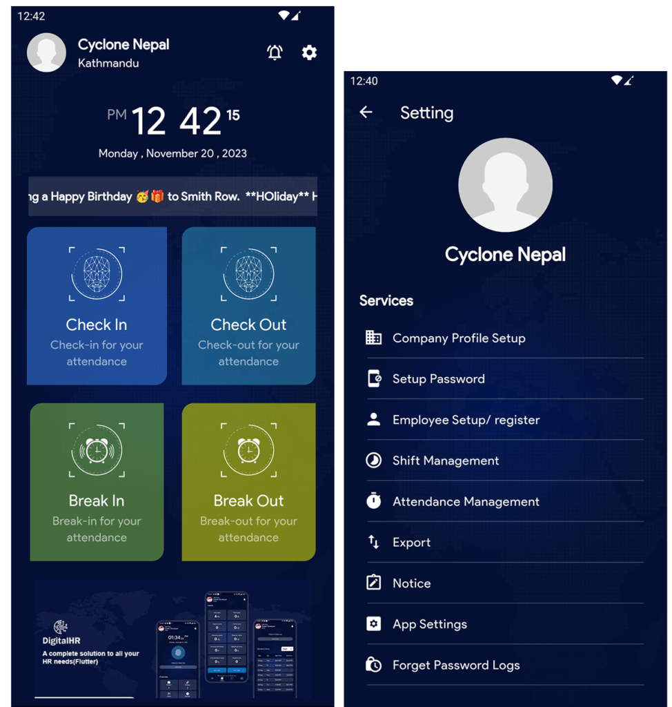 Digital HR (Offline) is a complete solution for all your attendance management and is written in Flutter language. This application is offline-based which means you don’t require an internet connection to use almost all of the features.